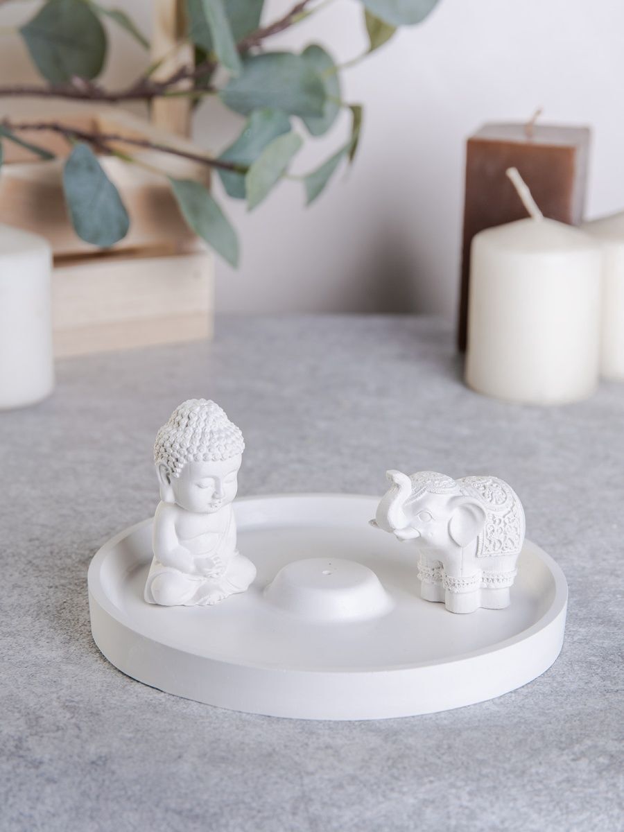 Диаметр подставки 15см. Толщина 1,5см. Высота Будда 6 см. Высота слоника 5 см.